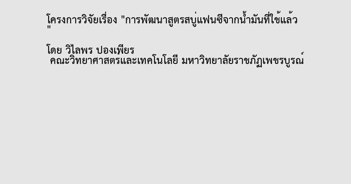 คำสำคัญ สบู่แฟนซี น้ำมันพืชที่ใช้แล้ว