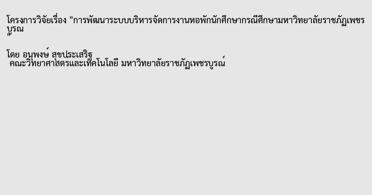 การพัฒนาระบบบริหารจัดการงานหอพักนักศึกษากรณีศึกษามหาวิทยาลัยราชภัฏเพชรบูรณ์