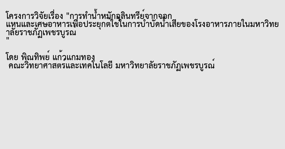 การทำน้ำหมักจุลินทรีย์จากจอก แหนและเศษอาหารเพื่อประยุกต์ใช้ในการบำบัดน้ำเสียของโรงอาหารภายในมหาวิทยาลัยราชภัฏเพชรบูรณ์