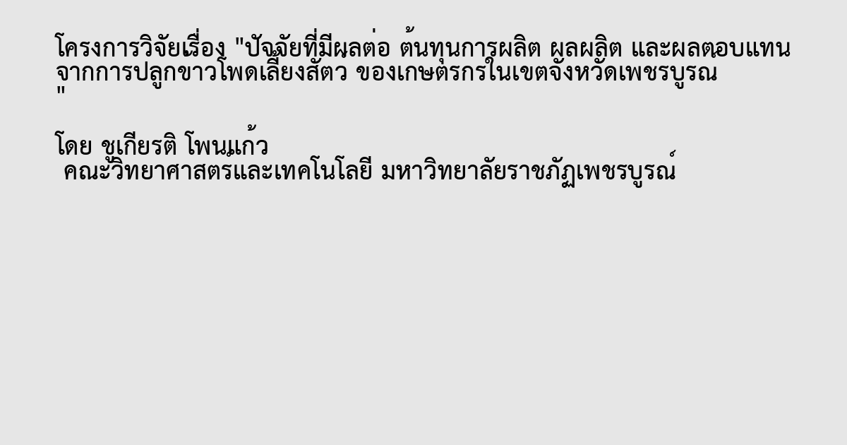 [ข้อมูลทั่วไป] 2554 : ปัจจัยที่มีผลต่อ ต้นทุนการผ...ตรกรในเขตจังหวัดเพชรบูรณ์