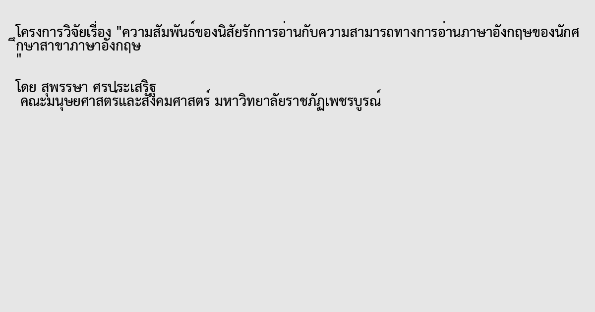 ความสัมพันธ์ของนิสัยรักการอ่านกับความสามารถทางการอ่านภาษาอังกฤษของนักศึกษาสาขาภาษาอังกฤษ