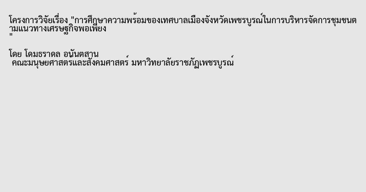 การศึกษาความพร้อมของเทศบาลเมืองจังหวัดเพชรบูรณ์ในการบริหารจัดการชุมชนตามแนวทางเศรษฐกิจพอเพียง