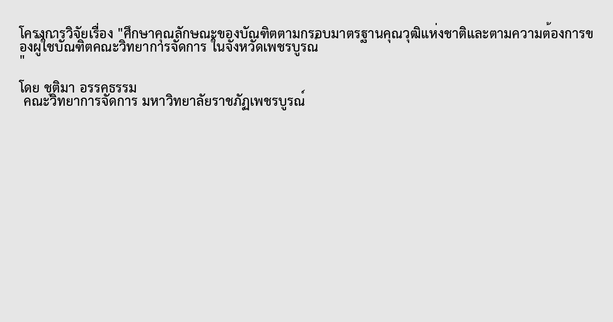 ศึกษาคุณลักษณะของบัณฑิตตามกรอบมาตรฐานคุณวุฒิแห่งชาติและตามความต้องการของผู้ใช้บัณฑิตคณะวิทยาการจัดการ ในจังหวัดเพชรบูรณ์
