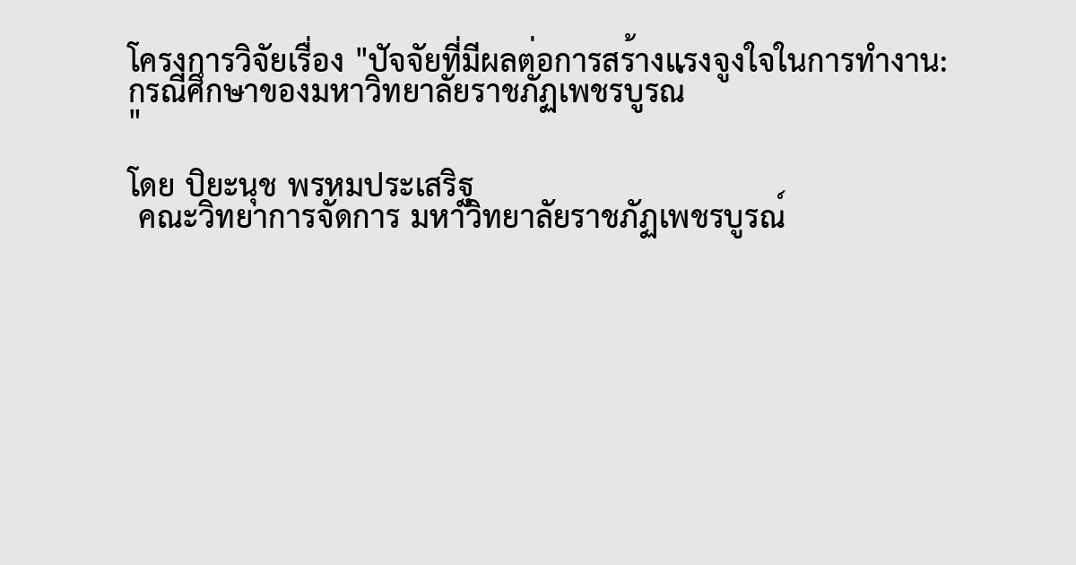 ปัจจัยที่มีผลต่อการสร้างแรงจูงใจในการทำงาน: กรณีศึกษาของมหาวิทยาลัยราชภัฏเพชรบูรณ์