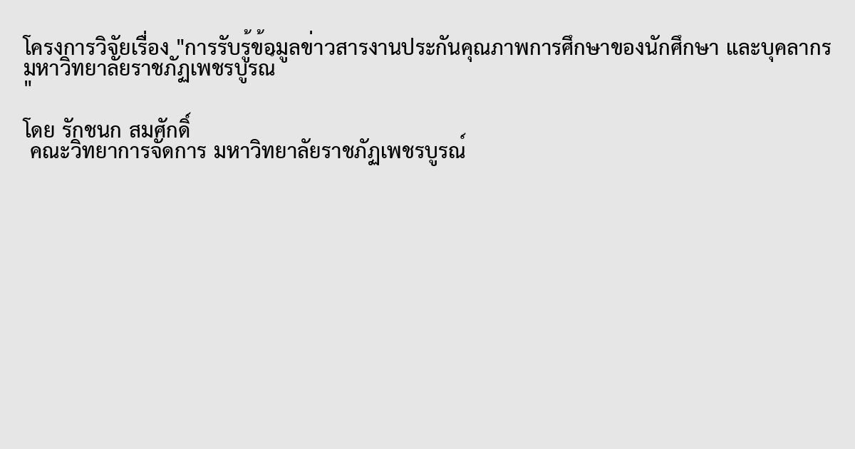 การรับรู้ข้อมูลข่าวสารงานประกันคุณภาพการศึกษาของนักศึกษา และบุคลากร มหาวิทยาลัยราชภัฏเพชรบูรณ์