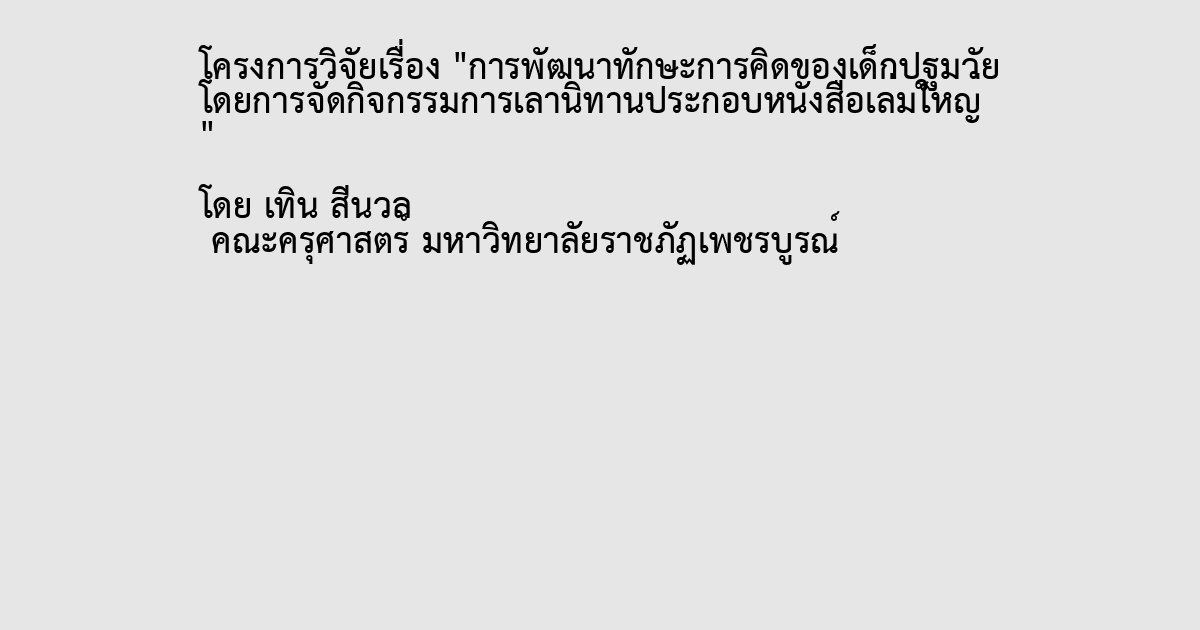 การพัฒนาทักษะการคิดของเด็กปฐมวัย โดยการจัดกิจกรรมการเล่านิทานประกอบหนังสือเล่มใหญ่