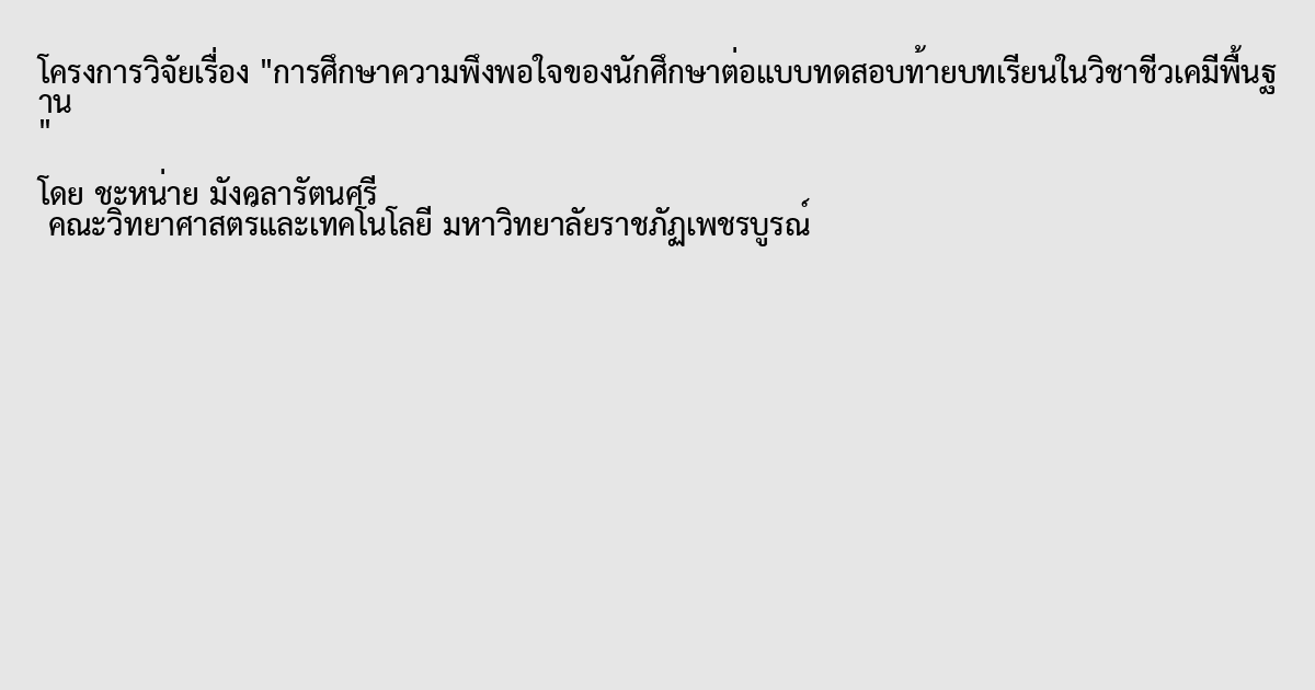 การศึกษาความพึงพอใจของนักศึกษาต่อแบบทดสอบท้ายบทเรียนในวิชาชีวเคมีพื้นฐาน