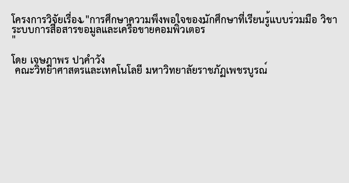 การศึกษาความพึงพอใจของนักศึกษาที่เรียนรู้แบบร่วมมือ วิชา ระบบการสื่อสารข้อมูลและเครือข่ายคอมพิวเตอร์