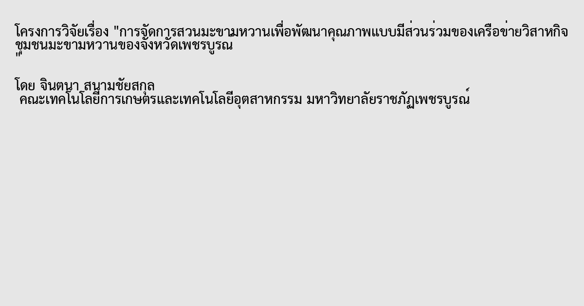 การจัดการสวนมะขามหวานเพื่อพัฒนาคุณภาพแบบมีส่วนร่วมของเครือข่ายวิสาหกิจชุมชนมะขามหวานของจังหวัดเพชรบูรณ์