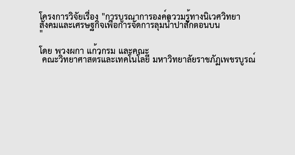 การบูรณาการองค์ความรู้,นิเวศวิทยา,สังคมและเศรษฐกิจ,การจัดการลุ่มน้ำป่าสักตอนบน,knowledge Integrated,ecology,socio-economic,management upper Pasak basin