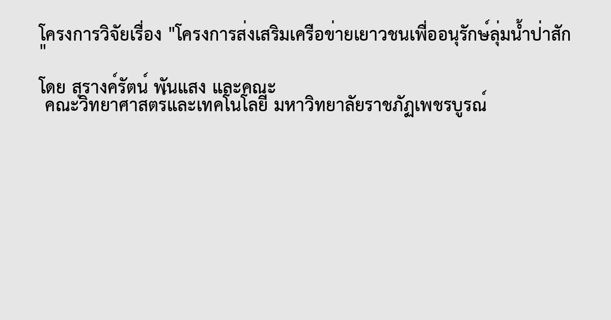 คำสำคัญ:ส่งเสริมเครือข่ายเยาวชน, การอนุรักษ์, ลุ่มน้ำป่าสัก