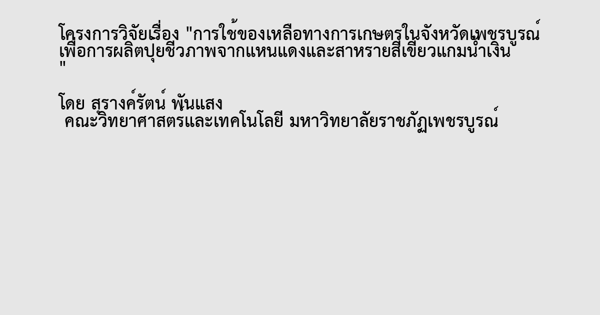 การใช้ของเหลือทางการเกษตรในจังหวัดเพชรบูรณ์ เพื่อการผลิตปุ๋ยชีวภาพจากแหนแดงและสาหร่ายสีเขียวแกมน้ำเงิน