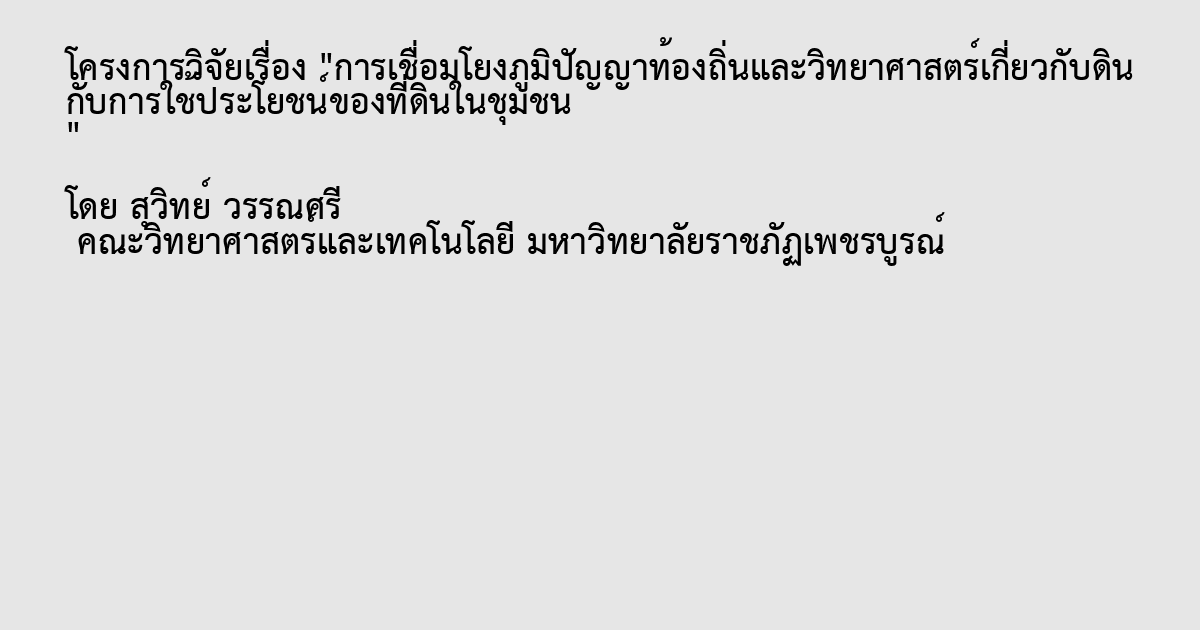 แผนการวิจัยเรื่อง การเชื่อมโยงภูมิปัญญาท้องถิ่นและวิทยาศาสตร์เกี่ยวกับดิน กับการใช้ประโยชน์ของที่ดินในชุมชน