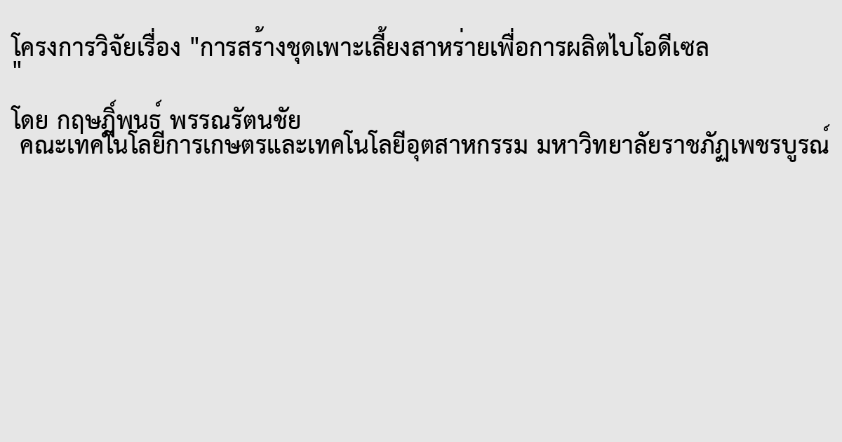 การสร้างชุดเพาะเลี้ยงสาหร่ายเพื่อการผลิตไบโอดีเซล