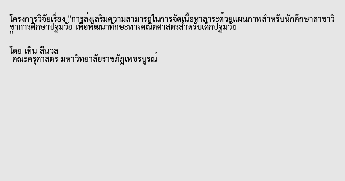การส่งเสริมความสามารถในการจัดเนื้อหาสาระด้วยแผนภาพสำหรับนักศึกษาสาขาวิชาการศึกษาปฐมวัย เพื่อพัฒนาทักษะทางคณิตศาสตร์สำหรับเด็กปฐมวัย