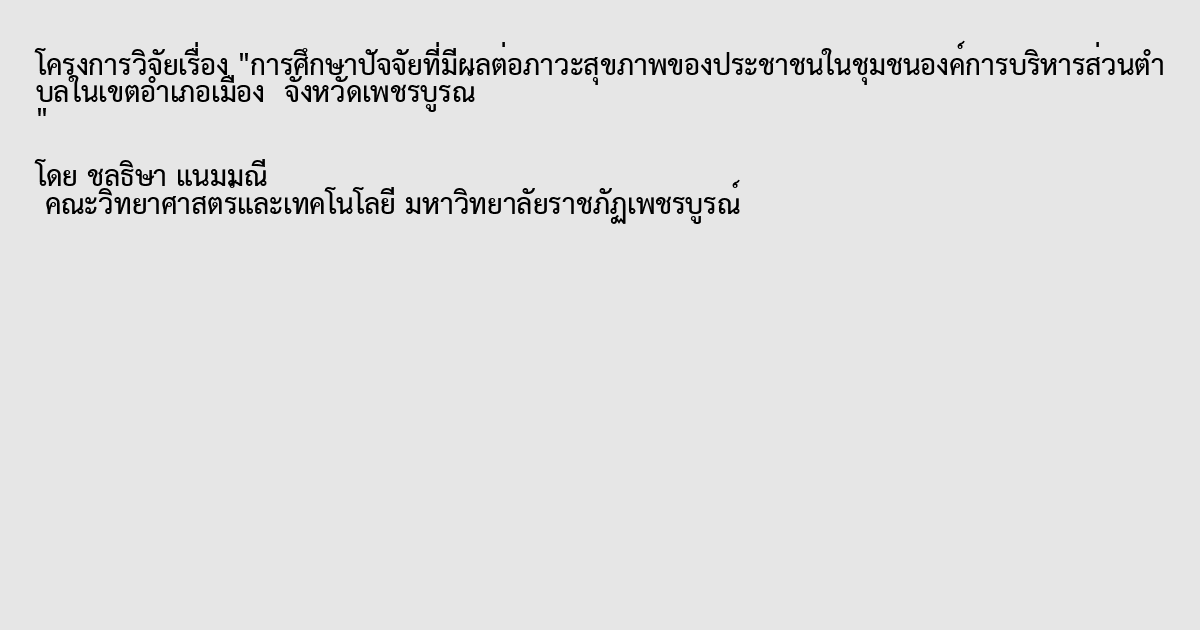 การศึกษาปัจจัยที่มีผลต่อภาวะสุขภาพของประชาชนในชุมชนองค์การบริหารส่วนตำบลในเขตอำเภอเมือง จังหวัดเพชรบูรณ์