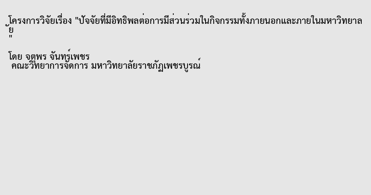 ปัจจัยที่มีอิทธิพลต่อการมีส่วนร่วมในกิจกรรมทั้งภายนอกและภายในมหาวิทยาลัย