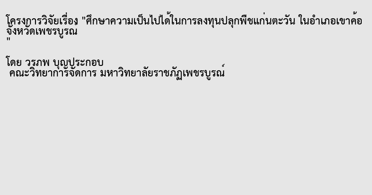 ศึกษาความเป็นไปได้ในการลงทุนปลุกพืชแก่นตะวัน ในอำเภอเขาค้อ จังหวัดเพชรบูรณ์