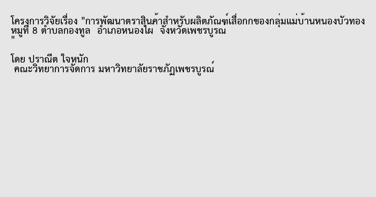 การพัฒนาตราสินค้าสำหรับผลิตภัณฑ์เสื่อกกของกลุ่มแม่บ้านหนองบัวทอง หมู่ที่ 8 ตำบลกองทูล อำเภอหนองไผ่ จังหวัดเพชรบูรณ์