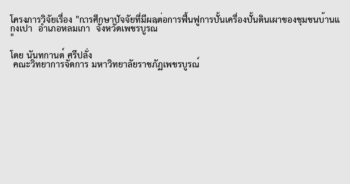 การศึกษาปัจจัยที่มีผลต่อการฟื้นฟูการปั้นเครื่องปั้นดินเผาของชุมชนบ้านแก่งเป้า อำเภอหล่มเก่า จังหวัดเพชรบูรณ์