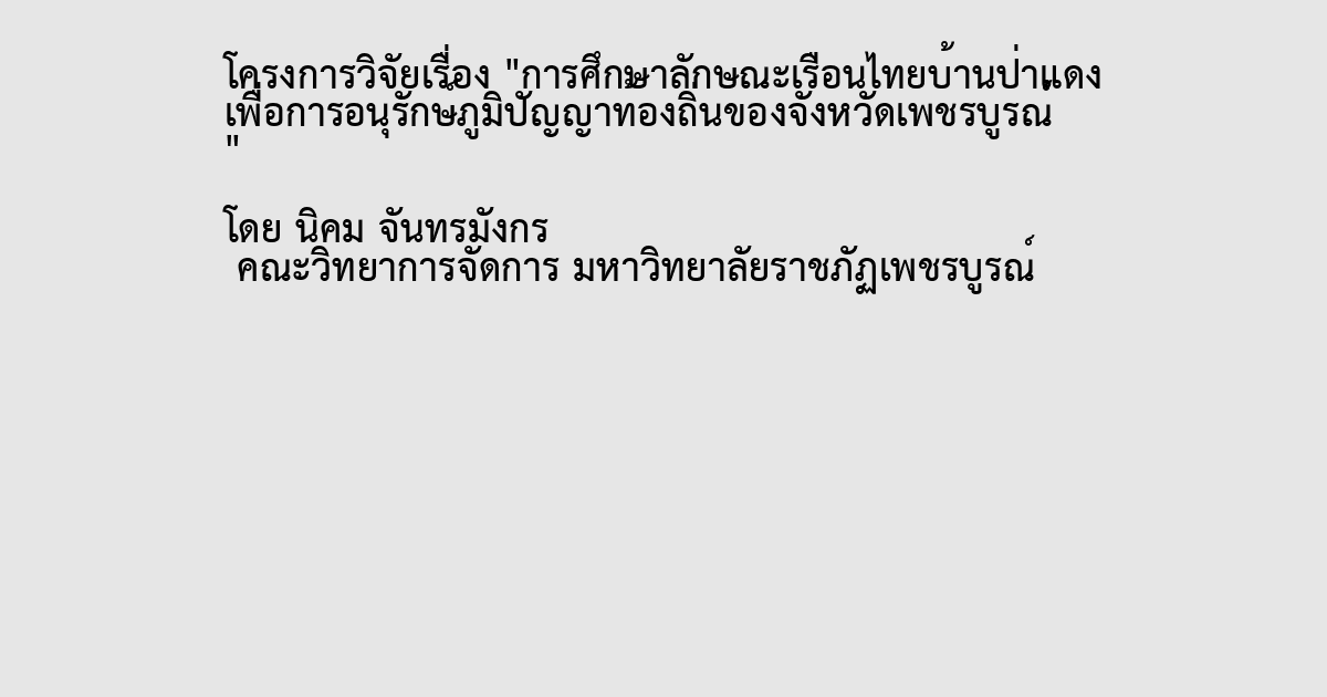 การศึกษาลักษณะเรือนไทยบ้านป่าแดง เพื่อการอนุรักษ์ภูมิปัญญาท้องถิ่นของจังหวัดเพชรบูรณ์
