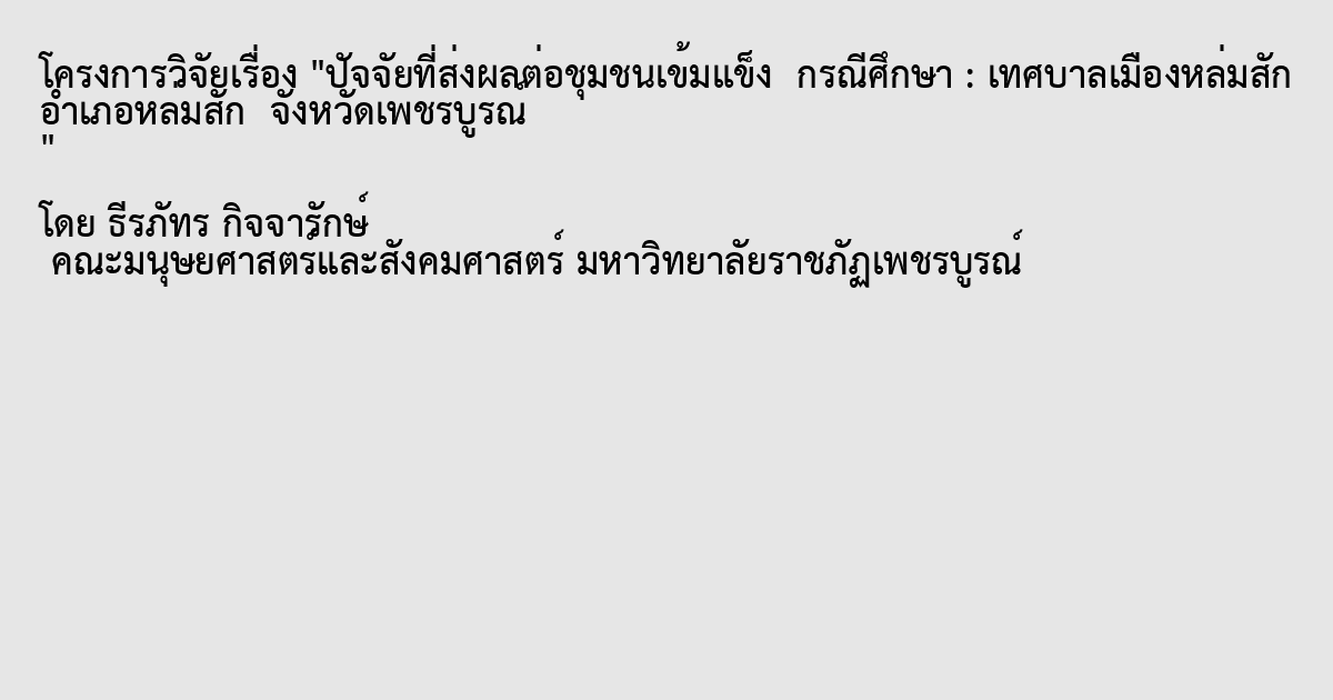 ปัจจัยที่ส่งผลต่อชุมชนเข้มแข็ง กรณีศึกษา : เทศบาลเมืองหล่มสัก อำเภอหล่มสัก จังหวัดเพชรบูรณ์