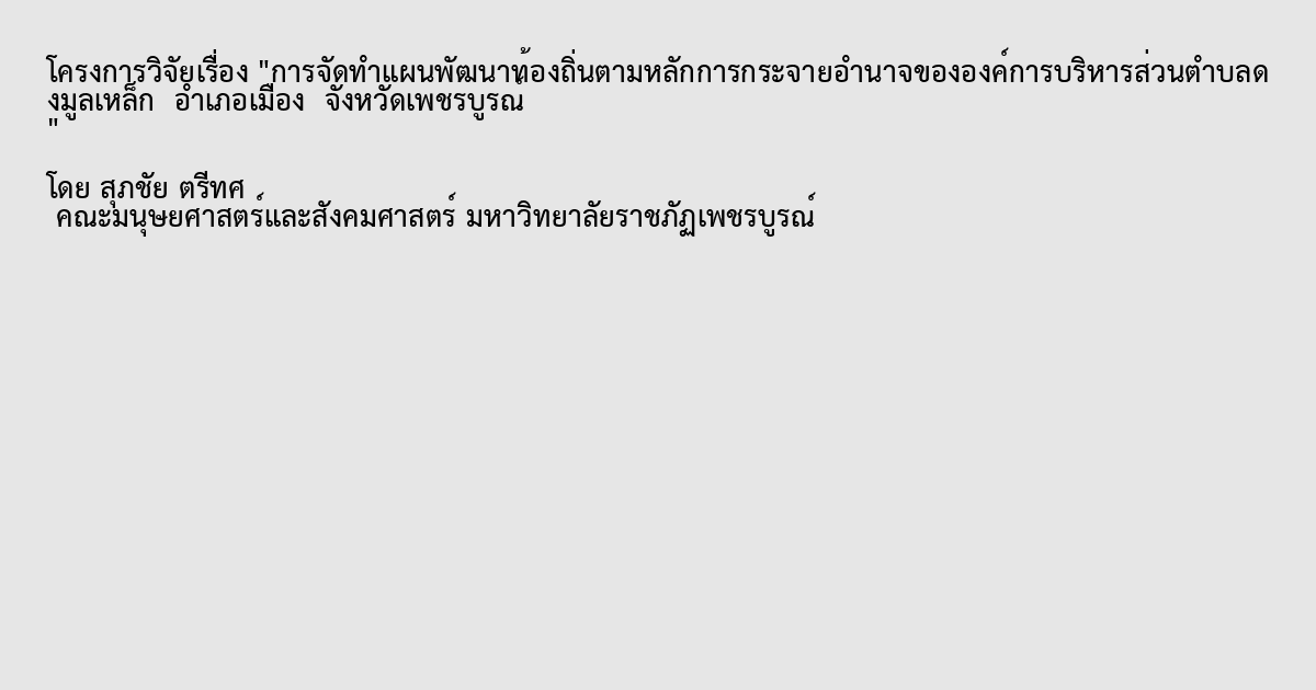 การจัดทำแผนพัฒนาท้องถิ่นตามหลักการกระจายอำนาจขององค์การบริหารส่วนตำบลดงมูลเหล็ก อำเภอเมือง จังหวัดเพชรบูรณ์