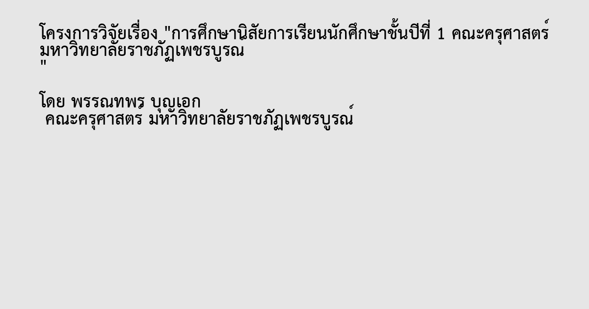 การศึกษานิสัยการเรียนนักศึกษาชั้นปีที่ 1 คณะครุศาสตร์ มหาวิทยาลัยราชภัฏเพชรบูรณ์