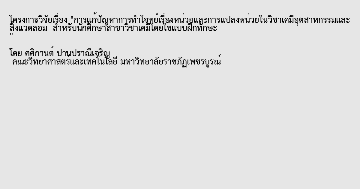 การแก้ปัญหาการทำโจทย์เรื่องหน่วยและการแปลงหน่วยในวิชาเคมีอุตสาหกรรมและสิ่งแวดล้อม สำหรับนักศึกษาสาขาวิชาเคมีโดยใช้แบบฝึกทักษะ
