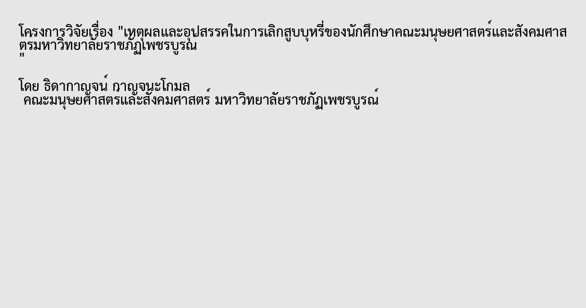 เหตุผลและอุปสรรคในการเลิกสูบบุหรี่ของนักศึกษาคณะมนุษยศาสตร์และสังคมศาสตร์มหาวิทยาลัยราชภัฏเพชรบูรณ์