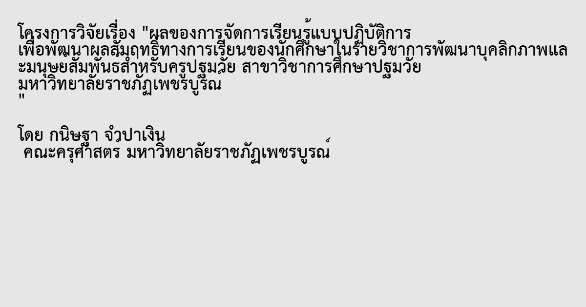 ผลของการจัดการเรียนรู้แบบปฏิบัติการ เพื่อพัฒนาผลสัมฤทธิ์ทางการเรียนของนักศึกษาในรายวิชาการพัฒนาบุคลิกภาพและมนุษย์สัมพันธ์สำหรับครูปฐมวัย สาขาวิชาการศึกษาปฐมวัย มหาวิทยาลัยราชภัฏเพชรบูรณ์