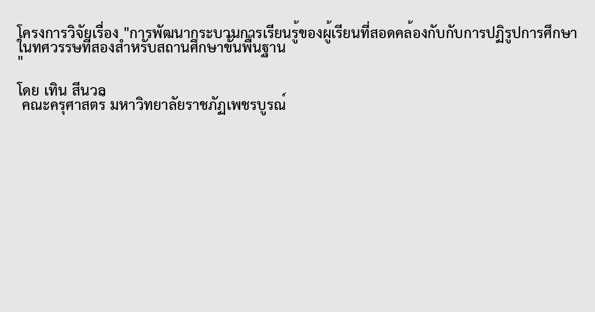 การพัฒนากระบวนการเรียนรู้ของผู้เรียนที่สอดคล้องกับกับการปฏิรูปการศึกษาในทศวรรษที่สองสำหรับสถานศึกษาขั้นพื้นฐาน