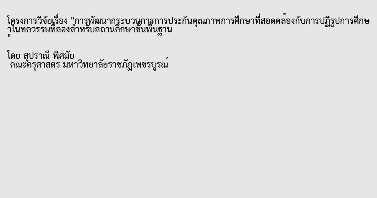 การพัฒนากระบวนการการประกันคุณภาพการศึกษาที่สอดคล้องกับการปฏิรูปการศึกษาในทศวรรษที่สองสำหรับสถานศึกษาขั้นพื้นฐาน