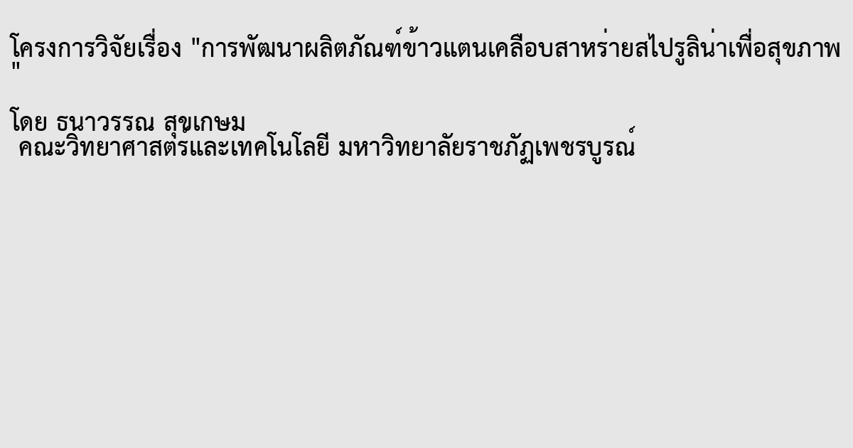 [ข้อมูลทั่วไป] 2552 : การพัฒนาผลิตภัณฑ์ข้าวแตนเคล...ร่ายสไปรูลิน่าเพื่อสุขภาพ