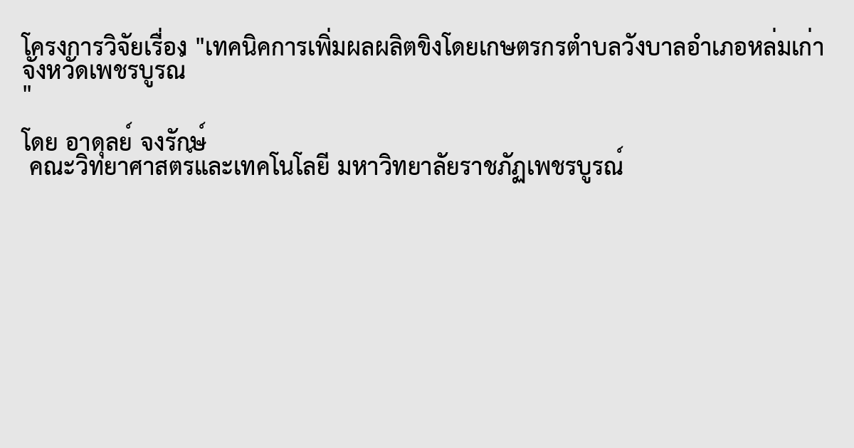 เทคนิคการเพิ่มผลผลิตขิงโดยเกษตรกรตำบลวังบาลอำเภอหล่มเก่า จังหวัดเพชรบูรณ์