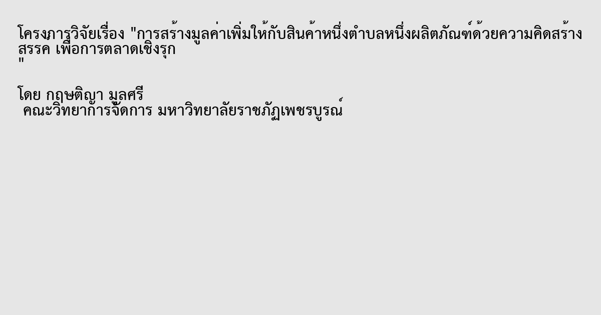 การสร้างมูลค่าเพิ่มให้กับสินค้าหนึ่งตำบลหนึ่งผลิตภัณฑ์ด้วยความคิดสร้างสรรค์ เพื่อการตลาดเชิงรุก