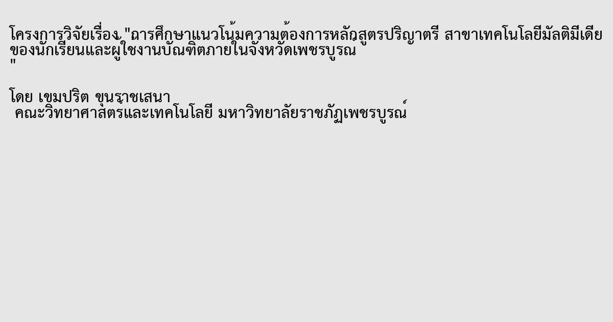 การศึกษาแนวโน้มความต้องการหลักสูตรปริญาตรี สาขาเทคโนโลยีมัลติมีเดีย ของนักเรียนและผู้ใช้งานบัณฑิตภายในจังหวัดเพชรบูรณ์