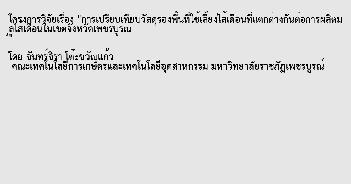 การเปรียบเทียบวัสดุรองพื้นที่ใช้เลี้ยงไส้เดือนที่แตกต่างกันต่อการผลิตมูลไส้เดือนในเขตจังหวัดเพชรบูรณ์