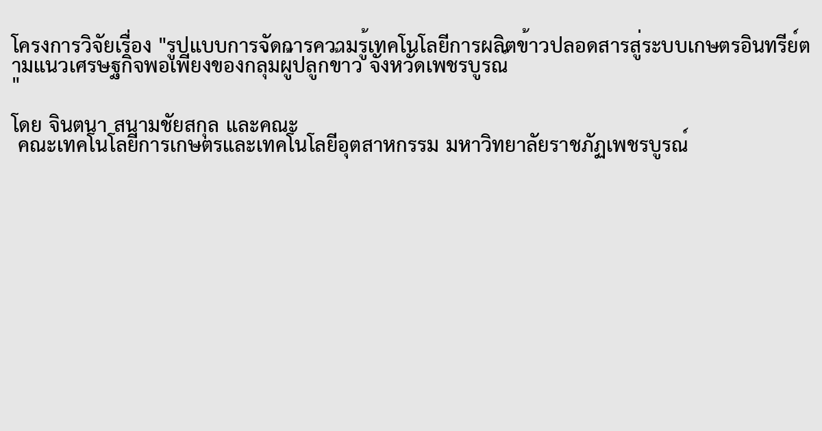 รูปแบบการจัดการความรู้เทคโนโลยีการผลิตข้าวปลอดสารสู่ระบบเกษตรอินทรีย์ตามแนวเศรษฐกิจพอเพียงของกลุ่มผู้ปลูกข้าว จังหวัดเพชรบูรณ์