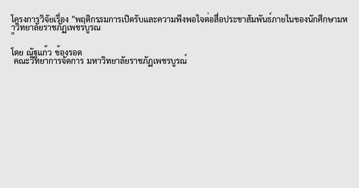 พฤติกรรมการเปิดรับและความพึงพอใจต่อสื่อประชาสัมพันธ์ภายในของนักศึกษามหาวิทยาลัยราชภัฏเพชรบูรณ์