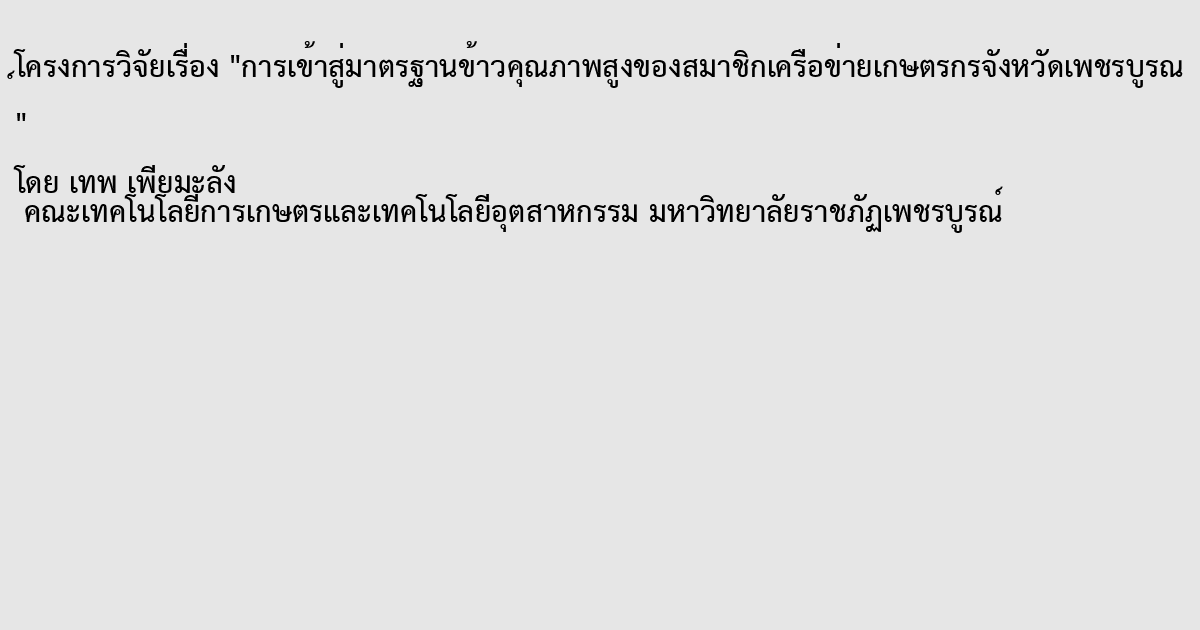 การเข้าสู่มาตรฐานข้าวคุณภาพสูงของสมาชิกเครือข่ายเกษตรกรจังหวัดเพชรบูรณ์