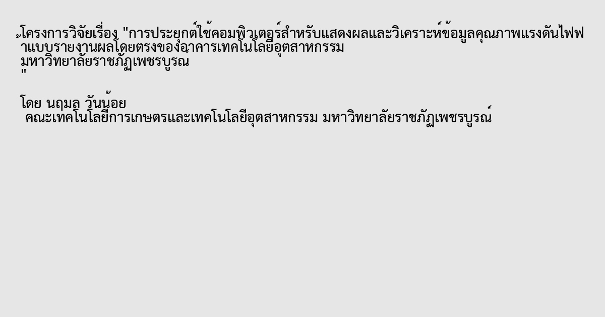 การประยุกต์ใช้คอมพิวเตอร์สำหรับแสดงผลและวิเคราะห์ข้อมูลคุณภาพแรงดันไฟฟ้าแบบรายงานผลโดยตรงของอาคารเทคโนโลยีอุตสาหกรรม มหาวิทยาลัยราชภัฏเพชรบูรณ์