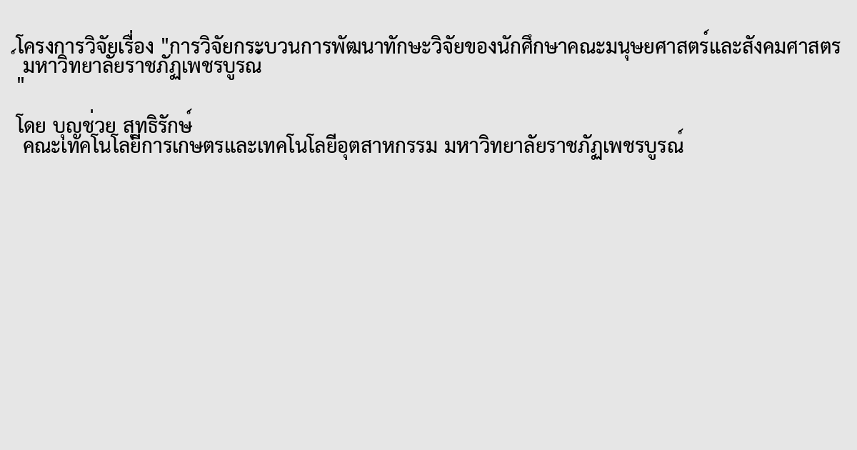 การวิจัยกระบวนการพัฒนาทักษะวิจัยของนักศึกษาคณะมนุษยศาสตร์และสังคมศาสตร์ มหาวิทยาลัยราชภัฏเพชรบูรณ์