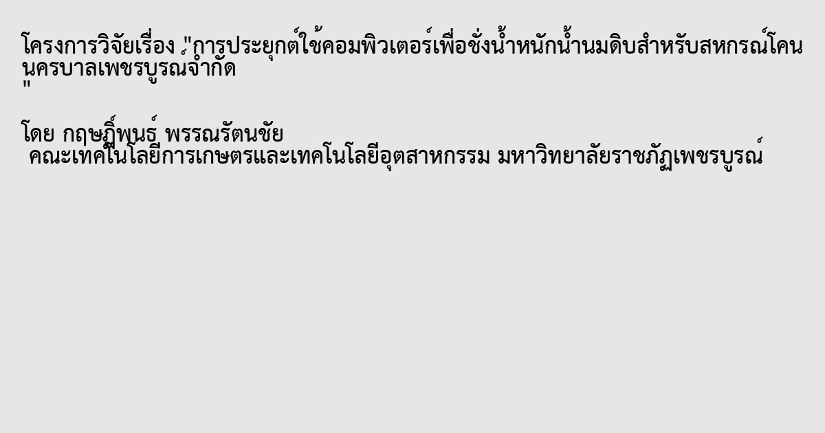การประยุกต์ใช้คอมพิวเตอร์เพื่อชั่งน้ำหนักน้ำนมดิบสำหรับสหกรณ์โคน นครบาลเพชรบูรณ์จำกัด