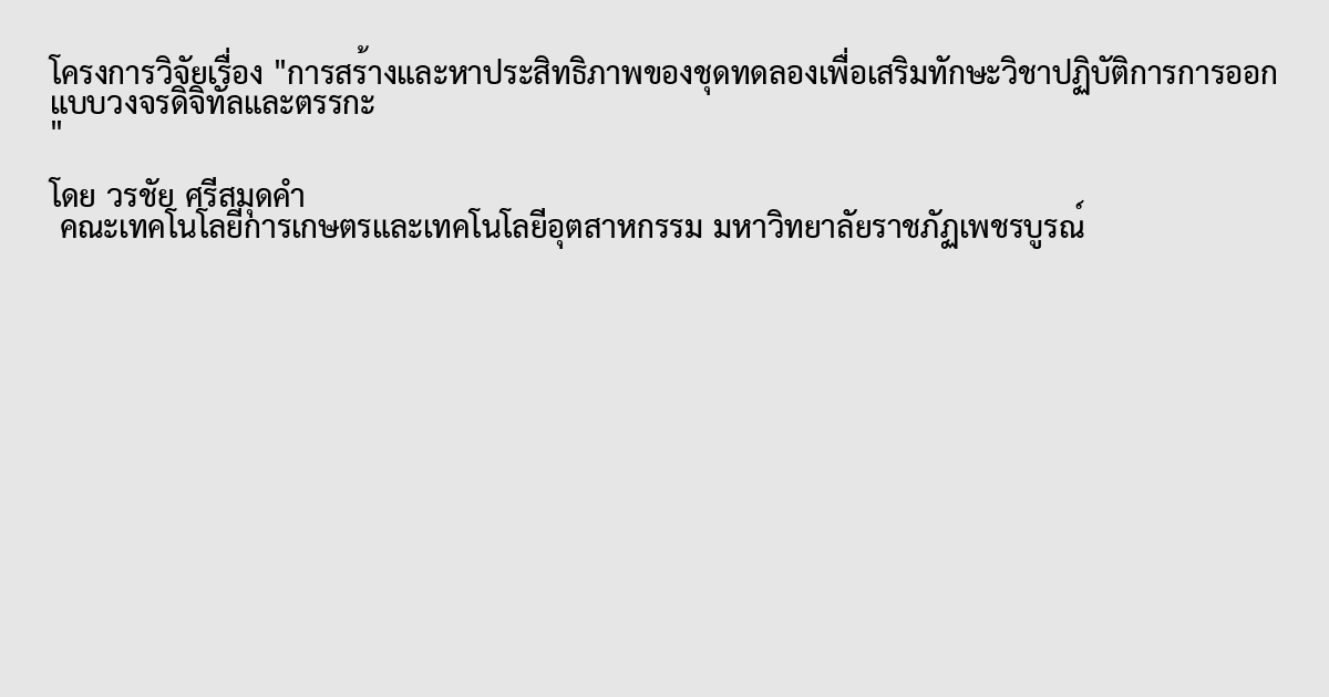 การสร้างและหาประสิทธิภาพของชุดทดลองเพื่อเสริมทักษะวิชาปฏิบัติการการออกแบบวงจรดิจิทัลและตรรกะ