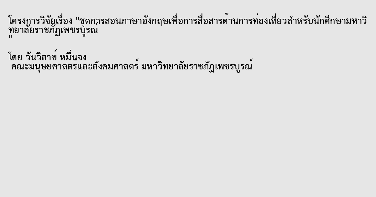ชุดการสอนภาษาอังกฤษเพื่อการสื่อสารด้านการท่องเที่ยวสำหรับนักศึกษามหาวิทยาลัยราชภัฏเพชรบูรณ์