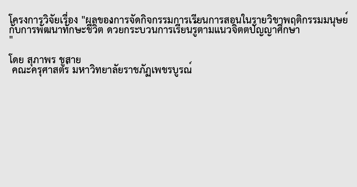 ผลของการจัดกิจกรรมการเรียนการสอนในรายวิชาพฤติกรรมมนุษย์ กับการพัฒนาทักษะชีวิต ด้วยกระบวนการเรียนรู้ตามแนวจิตตปัญญาศึกษา