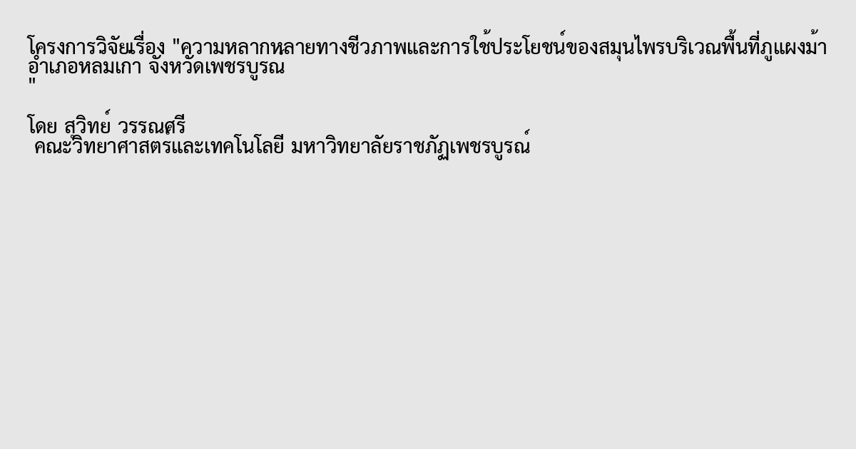 ความหลากหลายทางชีวภาพและการใช้ประโยชน์ของสมุนไพรบริเวณพื้นที่ภูแผงม้า อำเภอหล่มเก่า จังหวัดเพชรบูรณ์