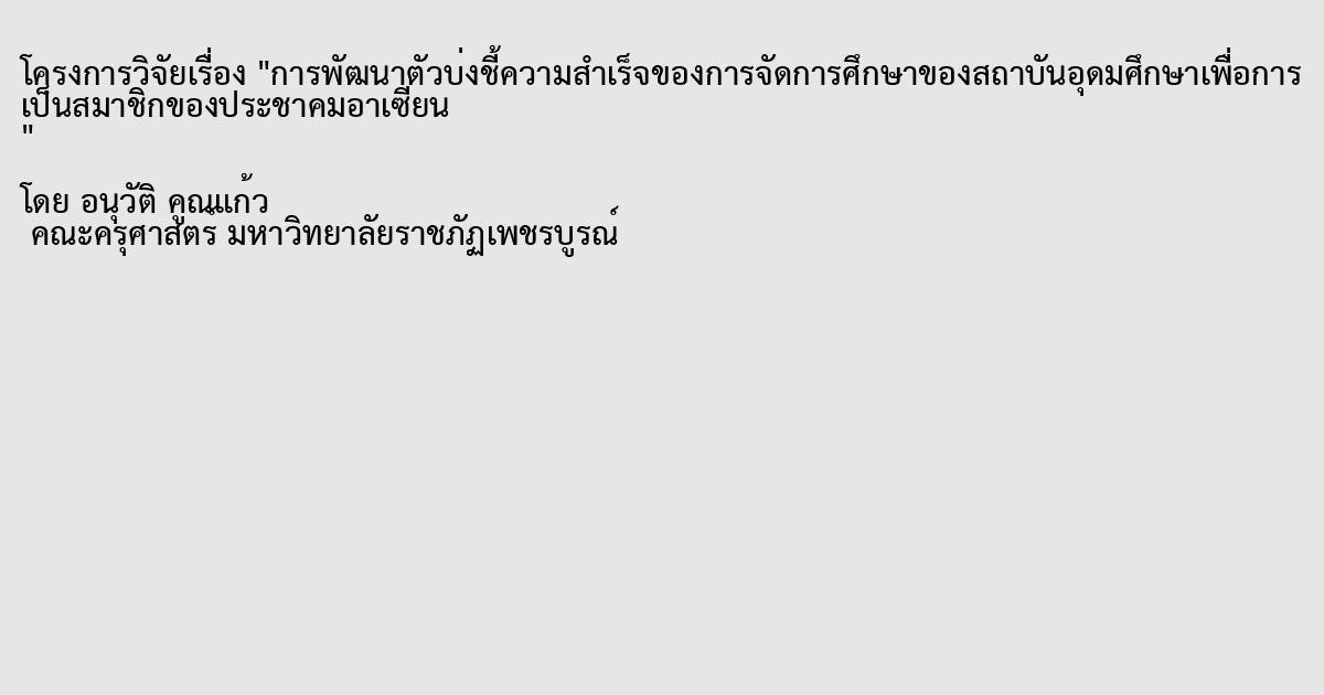 การพัฒนาตัวบ่งชี้ความสำเร็จของการจัดการศึกษาของสถาบันอุดมศึกษาเพื่อการเป็นสมาชิกของประชาคมอาเซียน