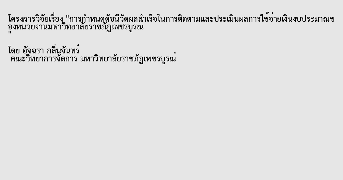 การกำหนดดัชนีวัดผลสำเร็จในการติดตามและประเมินผลการใช้จ่ายเงินงบประมาณของหน่วยงานมหาวิทยาลัยราชภัฏเพชรบูรณ์